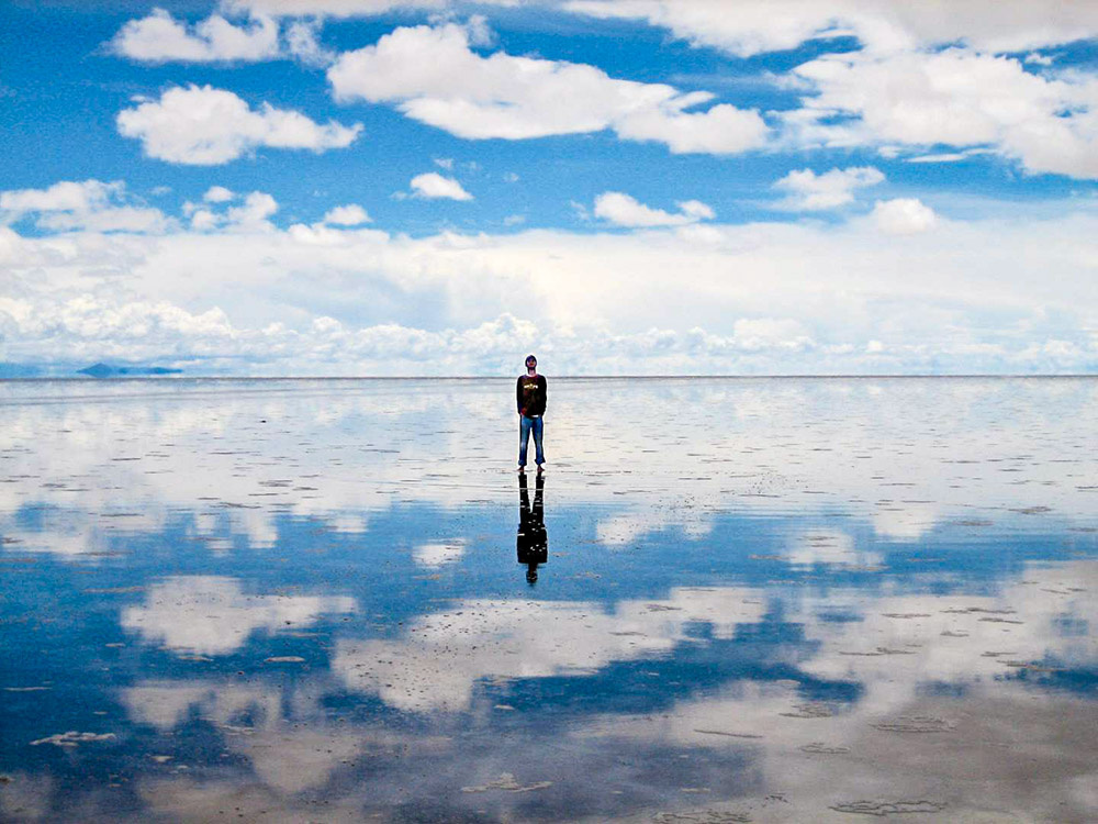 Боливия, Солончак Уюни: фото на огромном зеркале