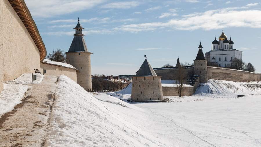 Первое, что смотрят в Пскове, — это местный Кром. Именно так — а не Кремль — принято называть здесь сердце крепости. Оборонительные кольца (хотя кольца они условные, примерно как московское Бульварное) сохранились достаточно хорошо. Их было пять, но четвертая цепь не уцелела. Псков всегда был городом пограничным, неприступным. Ни поляк Стефан Баторий, ни швед Густав II взять его так и не смогли.