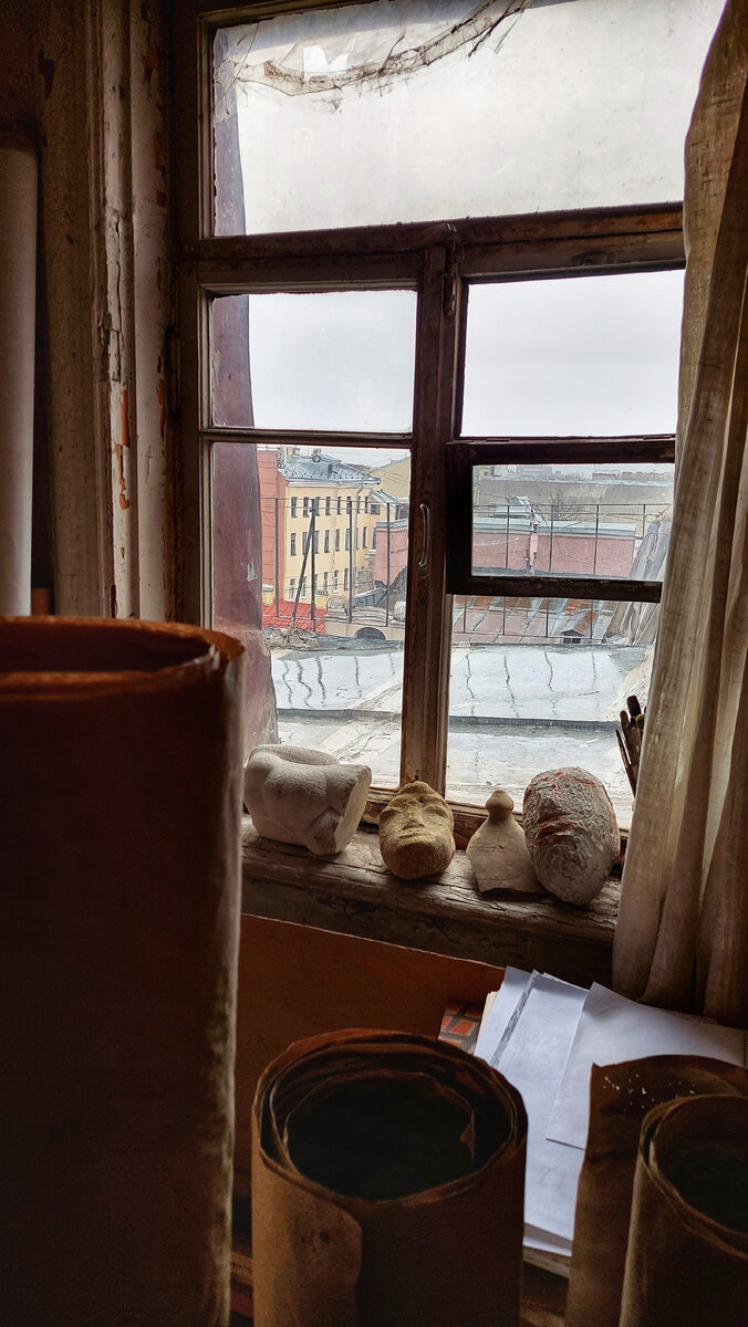 Нет, это я вам не красоты Петербурга сейчас показывать буду (хотя и их тоже, конечно), а балкон-крышу в мастерской Владимира Игоревича Загорова (да, Питер вчера был хмур и дождлив, зато какие цвета!)
