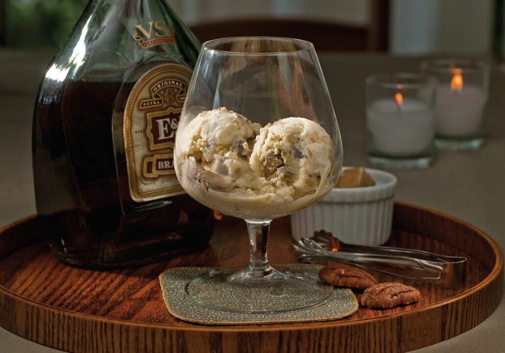 Делюсь с вами дессертом самогонщика:) Он настолько же вкусен насколько прост в приготовлении. При чём можно использовать любые вариации. В основе его мороженное. Которое не предлагаю вам делать собственноручно. Просто купите его на развес. В моём городе 0.5 кг стоит сейчас менее 200 ₽ Отрежьте порцию и положите в креманку. Если её нет, то хоть в чайную чашечку или тарелку с высокими бортиками;) Можете посыпать мороженое тёртым шоколадом, либо толчёными грецкими орехами предварительно поджаренными в духовом шкафу. Но самая главная фишка это...полить мороженое самогоном!!! Да-да! Вы не ослышались:) Именно самогоном. Примерно дессертная ложка на 100 г. Правда для этого не подойдёт мутный сэм в один перегон;) Это самый большой недостаток моего рецепта;) Нужен выдержаный на щепе или в бочке. Желательно зерновой или же фруктовый. То есть нечто похожее на коньяк или виски. Лайфхак! Если же у вас нет такого самогона - не беда! Всегда можно купить бутылочку Martell либо Ballantine's в соседн