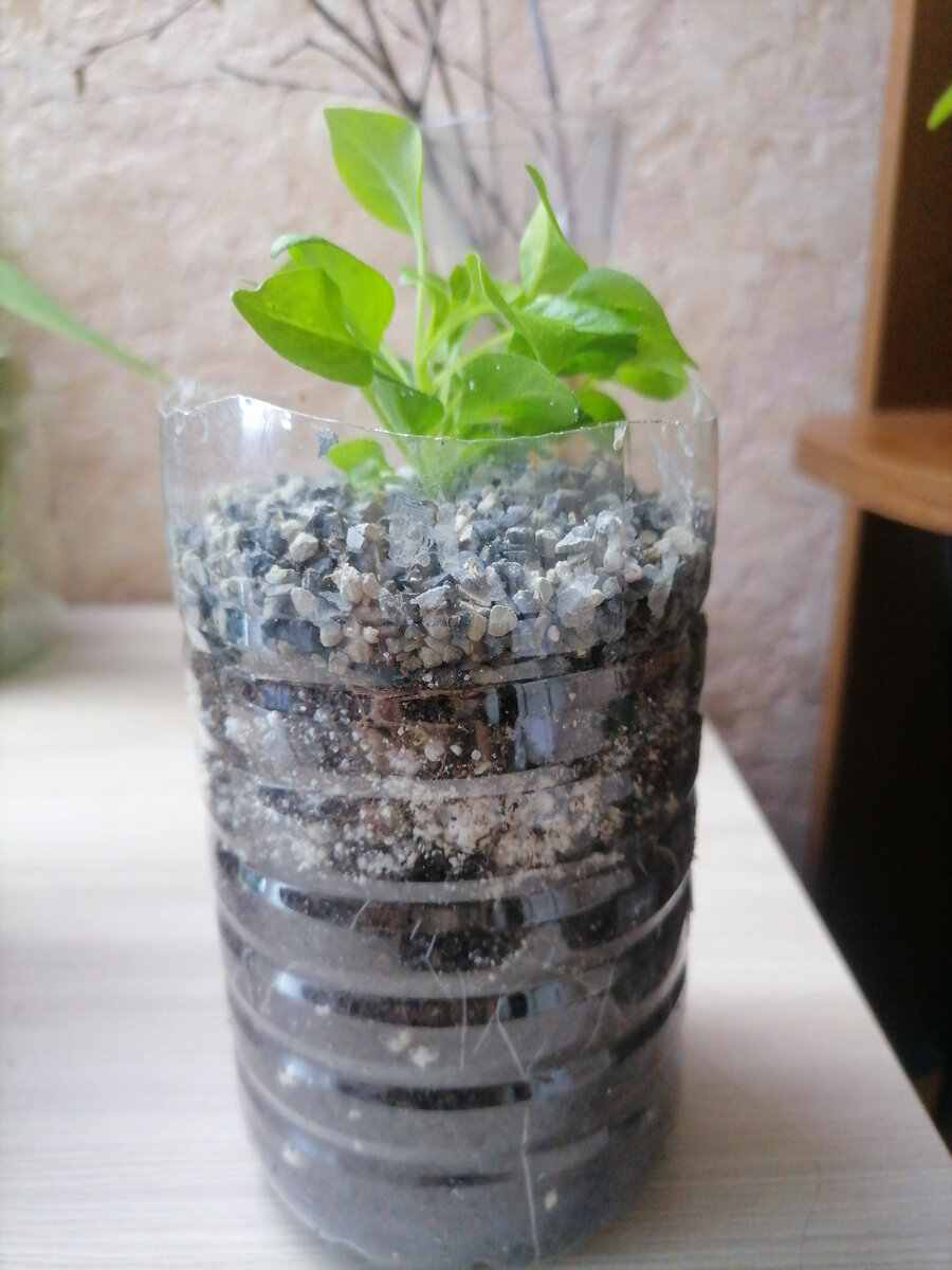 Петуния рассада. Петуния вообще лёгкий цветок в выращивании. Главное соблюдать правила при выращивании. Ваша петуния будет цвести шаром все лето. Вот мои секреты выращивания от посева до цветения. Когда пришло время пикировки петунии, я беру бутылку, обрезаю верхушку и насыпаю грунт. На дне бутылки я не делаю отверстия. Грунт беру обычный любой. Поливаю грунт, но не сильно и сажаю петунию. Дальше я беру цеолит и посыпаю сверху на грунт пару сантиметров. Он помогает и влагу удержать в грунте и от мошек спасает. Мошка не может там плодиться. И ваша рассада петунии не пострадает её не съест личинка мошки. А ещё сверху присыпанный цеолит спасёт от гнили если вы вдруг перелили и не будет плесени в земле и грибковых заболеваний. Петуния растёт махом корневая прёт и цветение сразу наступает.