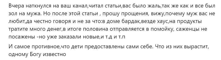 Если я знаю, что кашу я заварила, я сама и тяну) Огород это моя тема, я знаю, что мужу он не нужен. Конечно я могу о чем то попросить, но ругать его я не буду если он это не сделает, я могу только расстроиться, также и относительно цветов и т.д.