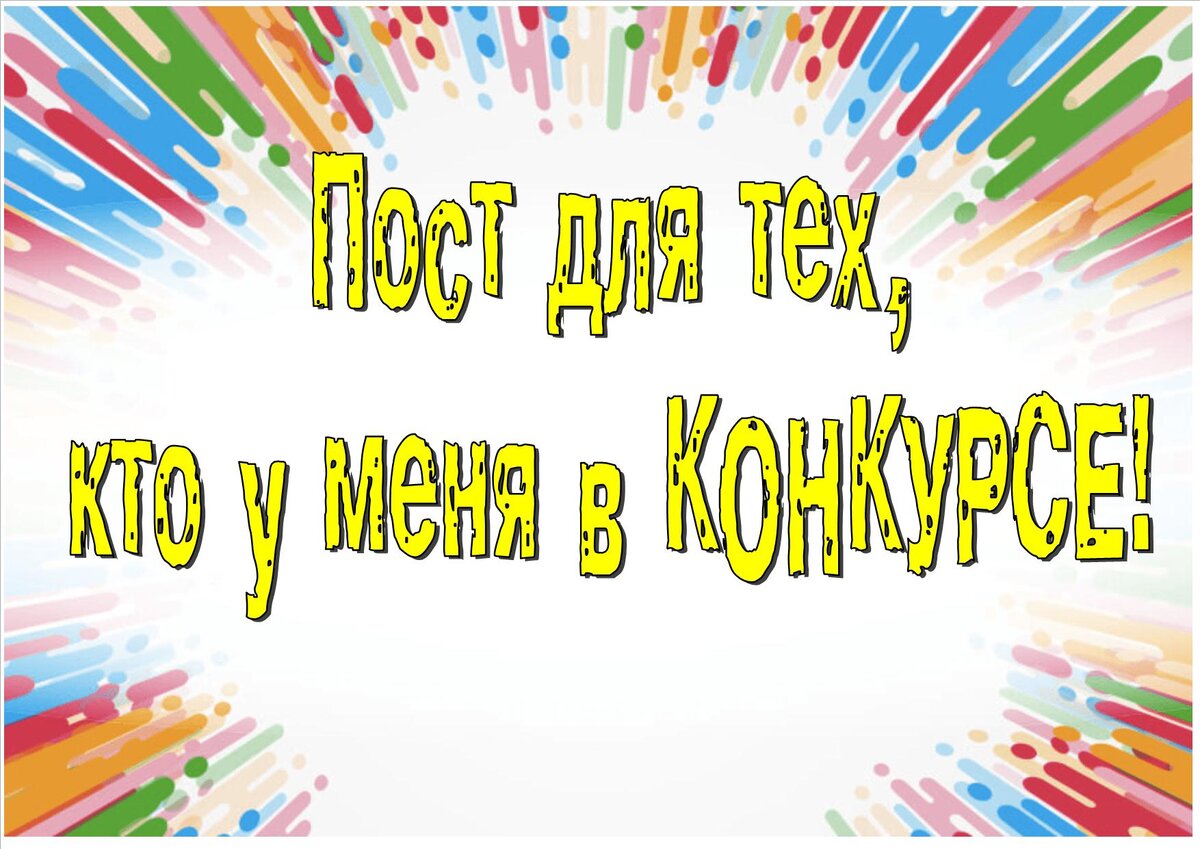 В общем, ребята! У меня с моим Конкурсом ступор, я эти 40 участников так буду 3 года собирать, мне уж эта статья глаза мозолит, хочется ее убрать. Много лишнего там пишут)И по взаимкам, и "просто понаблюдаю", и вообще, что-то к конкурсу не относящееся))) Надоело чистить-не пишите там лишнего, пожалуйста))) По цифрам тоже там путаница, одно и тоже число пишут несколько раз. Поэтому, я там все вычистила, напишите кто еще хочет -просто одно слово "УЧАСТВУЮ". Номера сама раздам. Правила там поменяла, почитайте. Конкурс проведу 25 апреля 2023 г. и финита-ля -комедия))) Всем добра и всех обняла:)