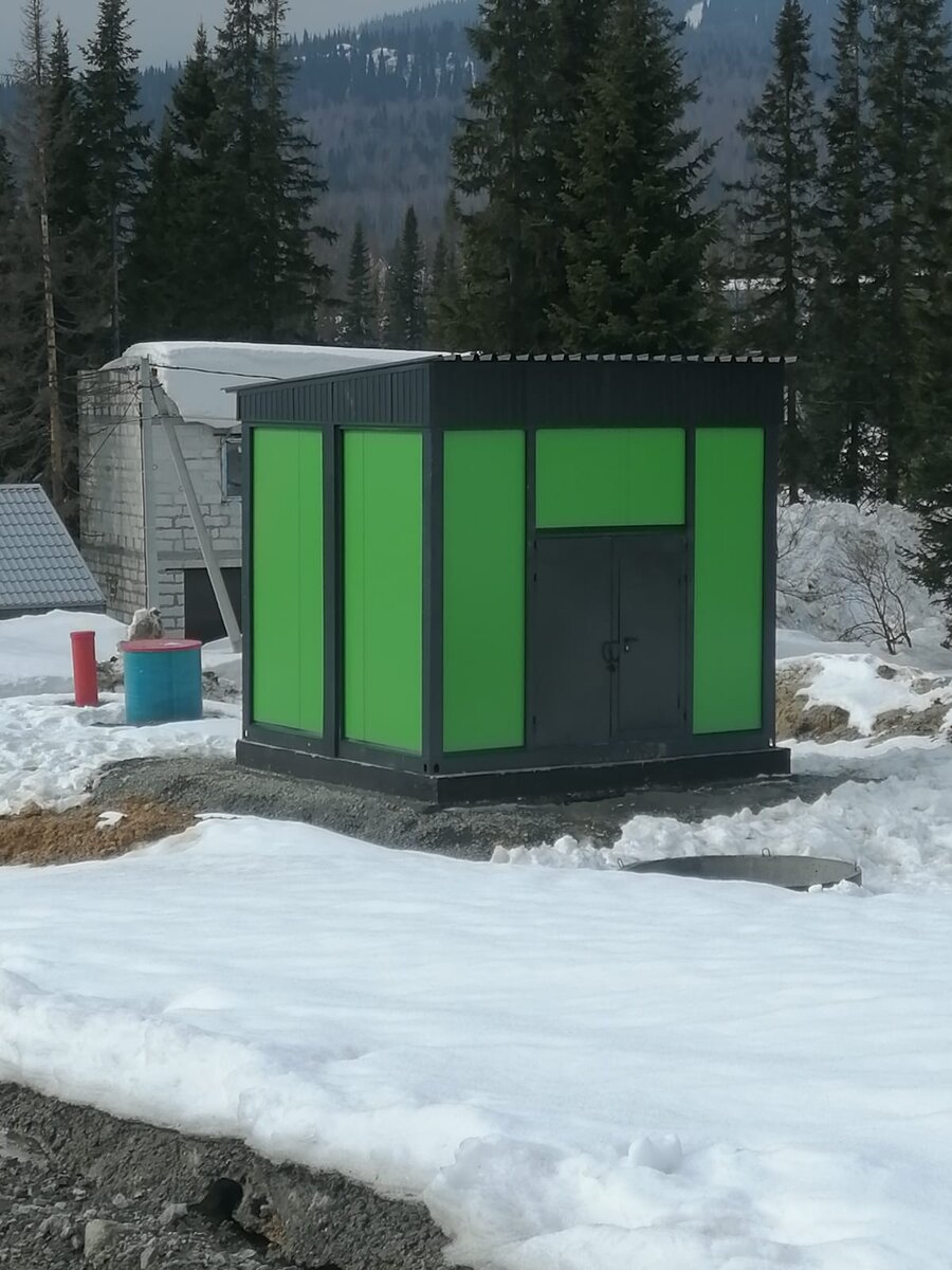 Здравствуйте! Ребята с Сибири присылают фотографии выполненных работ. Строительный сезон начался, работа пошла. Помните фотографию загорающих в Шерегеше, это они собирали вот такой вот домик. Это насосная станция противопожарной системы.