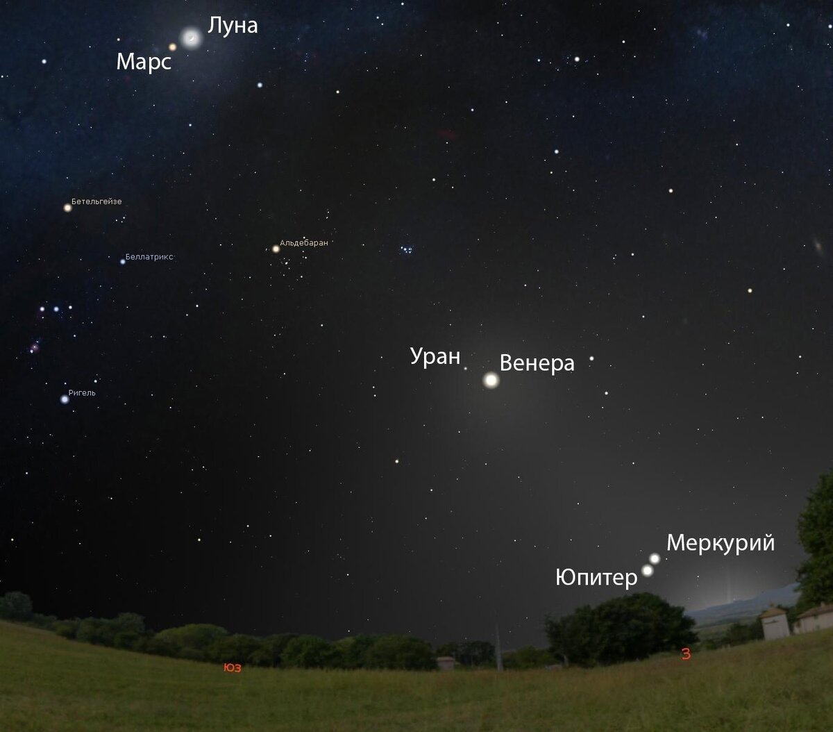 28 марта в небе над Новосибирском в линию выстроятся Меркурий, Венера, Марс, Уран, Юпитер и Луна. В последние дни марта в небе северного полушария Земли можно будет наблюдать парад планет. Для жителей Новосибирска хорошие дни для наблюдения — с 28 по 31 марта. Об этом сообщили в обсерватории Университета Решетнева в Красноярске. Меркурий, Венеру, Марс, Уран, Юпитер и Луну можно будет увидеть в эти дни на юго-западе неба, на 73 градуса. Парад планет можно будет наблюдать сразу после захода Солнца. Заведующий отделом исследований Солнечной системы Института астрономии РАН Валерий Шематович отметил, что вопреки суевериям, расположение планет никак не сказывается на жизнь на Земле. Так, самый крупный прилив, вызванный ближайшей к Земле планетой, Венерой, был в 10 тысяч раз слабее тех приливов, которые каждый месяц оказывает на Землю Луна. Предыдущий парад планет жители Новосибирска наблюдали в июне 2022 года. Тогда в одну линию выстраивались Меркурий, Венера, Марс, Юпитер и Сатурн. Наблюда