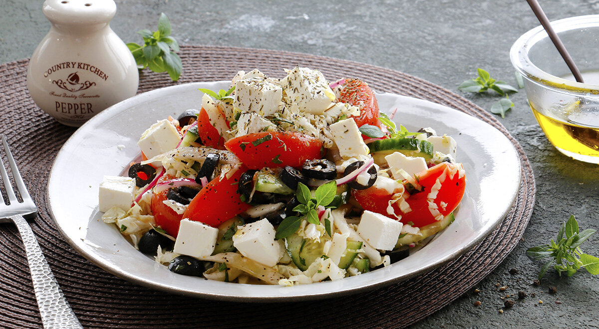 Если вы хотите попробовать что-то новое и оригинальное, то 🥗 греческий салат с пекинской капустой - идеальный выбор. Это сочетание свежих овощей, ароматных трав и сыра фета создает неповторимый вкус и приятное послевкусие. 🥬Пекинская капуста добавляет салату хрустящую текстуру и делает его более сытным и питательным. 👨🍳 Готовьте этот салат на обед или для вечеринки с друзьями - он всегда будет вкусным и привлекательным. ИНГРЕДИЕНТЫ: свежие огурцы – 300 г помидоры – 400 г красная луковица – 100 г красный винный уксус – 40 мл пекинская капуста – 150 г черные оливки без косточек – 150 г орегано – 2 веточки базилик – 2 веточки оливковое масло – 100 мл фета – 150 г соль - по вкусу свежемолотый черный перец – по вкусу ПОШАГОВЫЙ РЕЦЕПТ ⬇️ 👍 ХОЗЯЙКЕ НА ЗАМЕТКУ Пекинская капуста идеально вписывается в компанию к другим ингредиентам греческого салата: сочная и хрустящая, она подчеркивает вкус других продуктов, но совершенно не затмевает его. 👍 КСТАТИ В греческий салат с пек