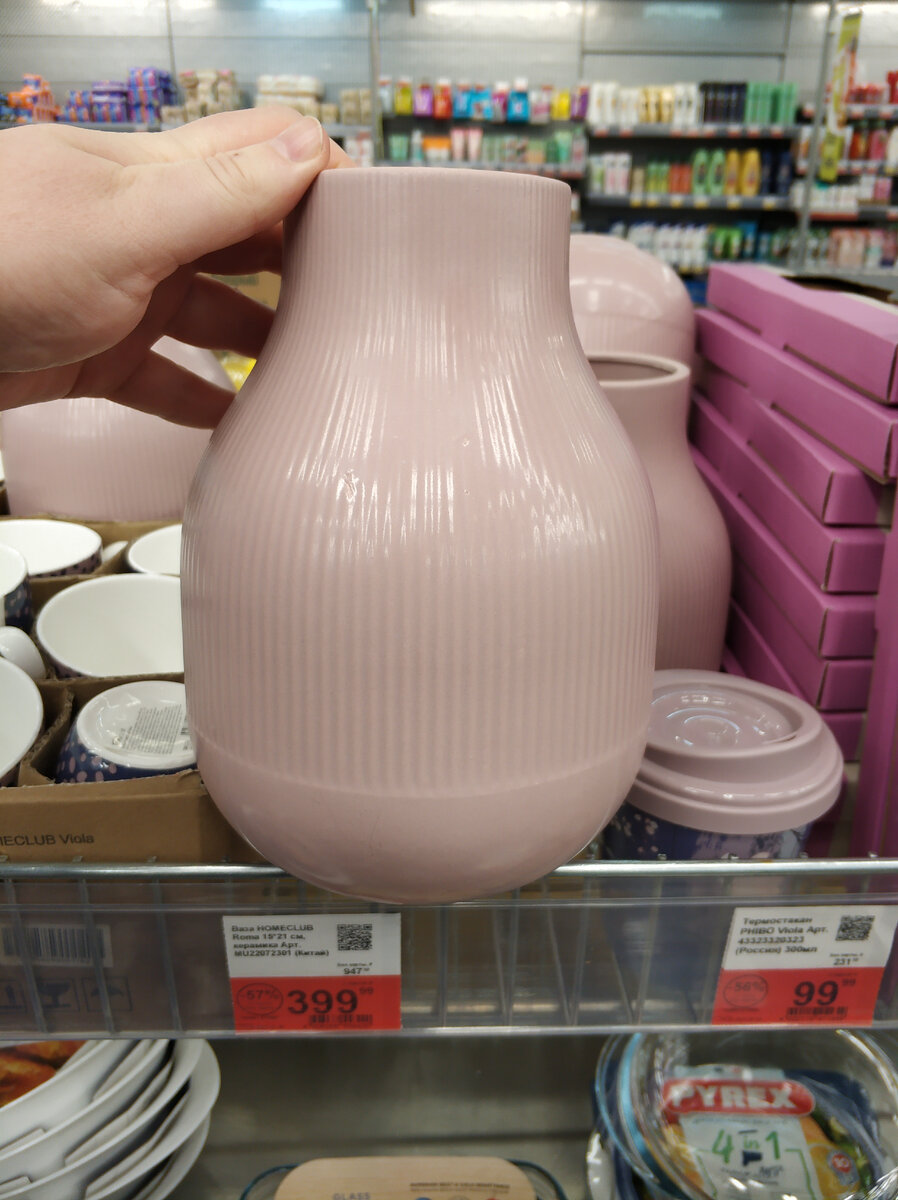 Начну с этих вот вазочек, симпатичных, широких, керамических. Стоит 399 руб.