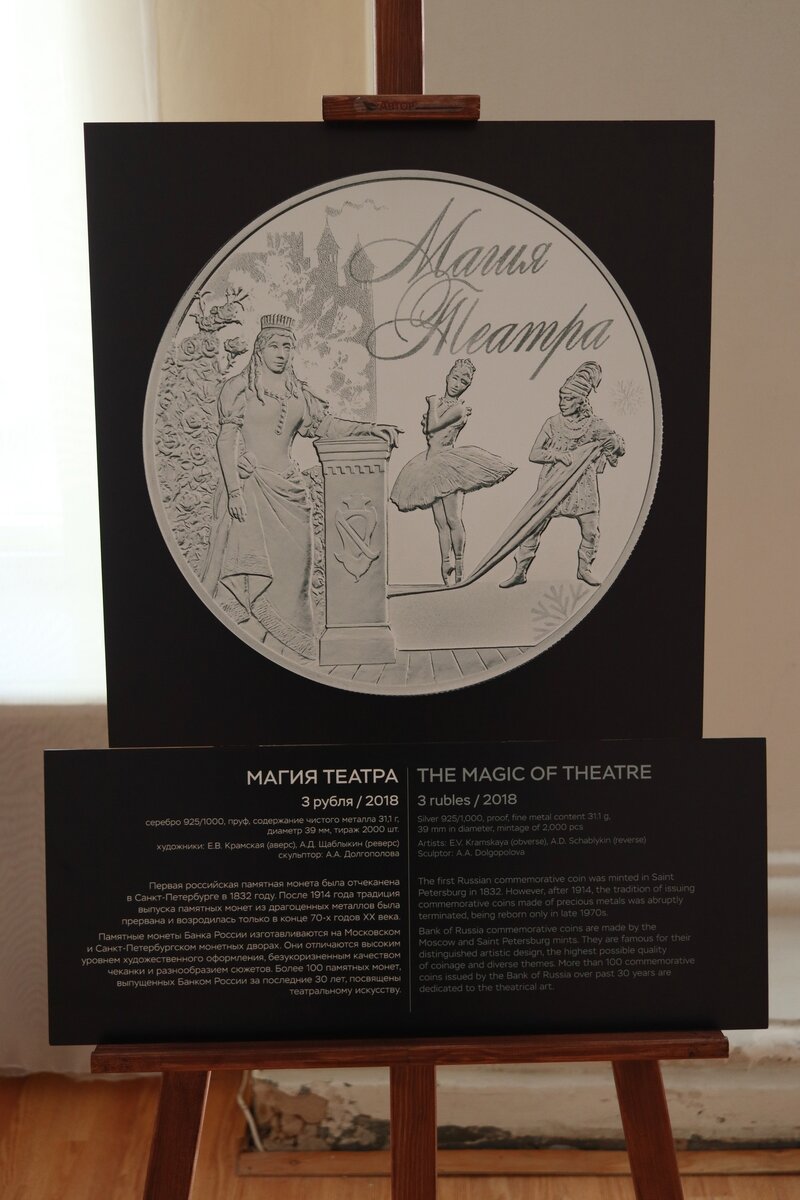На экспозиции представлены изображения 15 памятных монет из драгоценных металлов. В полную коллекцию по теме театра входит более ста монет разных серий!