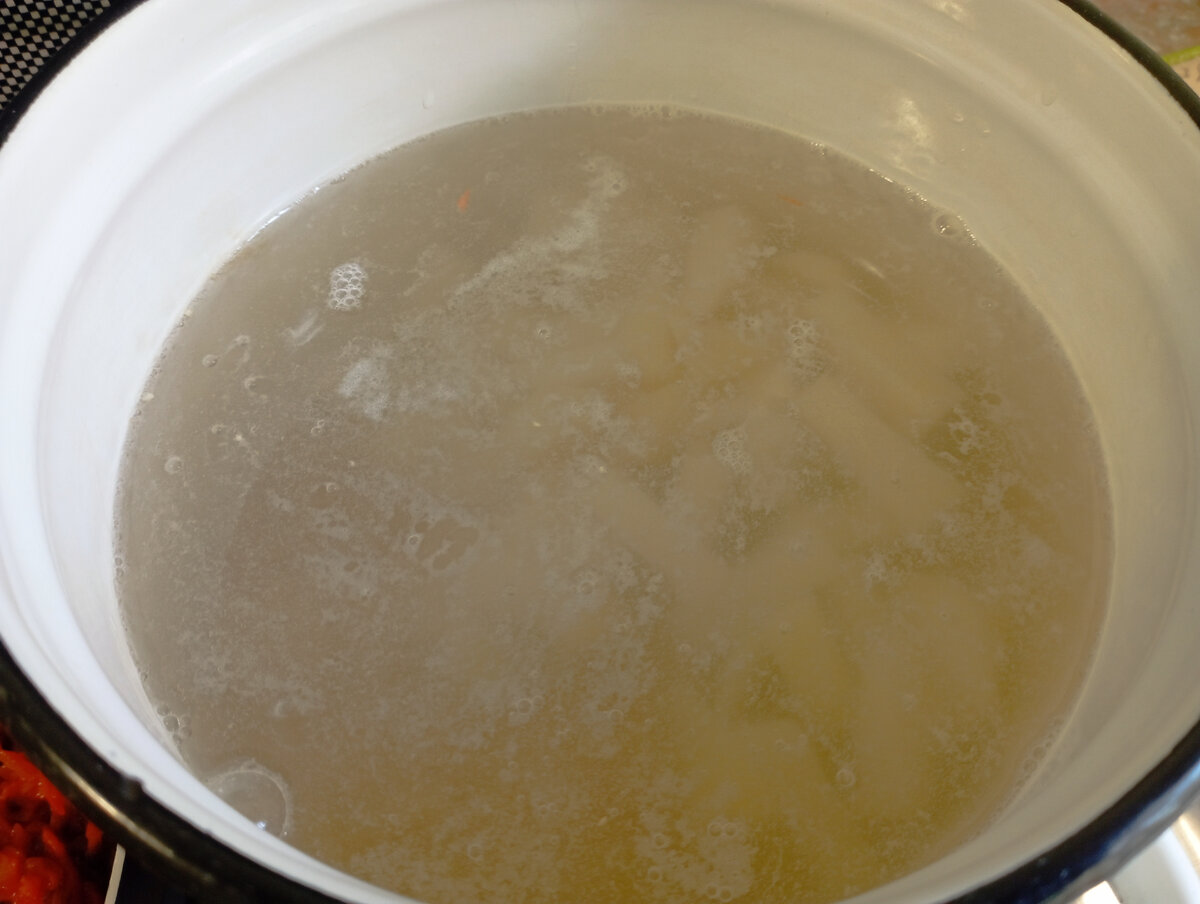 Итак, без всяких предисловий: ставим на огонь кастрюлю с водой, туда закидываем картошку и промытую перловку. Пока вода закипает, готовим зажарку: лук, морковь, маринованные огурцы и заправляем томатом (я использую соус для болоньезе - он содержит орегано, что придаёт некоторую изюминку блюду) Ещё в зажарку я добавляю немного постного майонеза. Всё это перемешиваем и отправляем в кастрюлю с картофелем и крупой. Добавляем соль, перец и специи по вкусу. Варим до готовности картофеля и перловки. Выключаем, даём настояться. Приятного аппетита!
