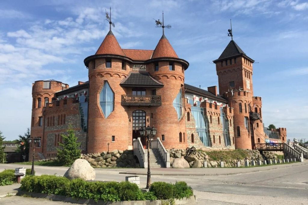 В замке частенько проводят различные праздники: свадьбы, дни рождения, семейные праздники и корпоративы. В стоимость проживания входит завтрак на двоих, который накрывают по системе "шведского стола". Можно воспользоваться услугами водителя до аэропорта "Храброво" и города Калининграда, услуги прачечной, спа центр, массаж, хаммам, пивные ванны, бассейн с теплой водой. Оказавшись в таком месте, появляется желание осмотреть строение не только снаружи, но и пройти по его залам. В убранстве элементы, типичные для замков Тевтонского ордена. Состаренная мебель, гобелены, рыцарские охотничьи трофеи, оружие и амуниция тевтонцев, с точностью воссозданная современными мастерами, все это вы сможете увидеть в замке. Даже поучаствовать в рыцарских турнирах и облачиться в наряд средневекового рыцаря. Как готовится любой каприз за ваши деньги. Интерьер ресторана оформлен в старинном стиле. На входе стоят огромные, мощные двери, а окна украшают яркие витражи из цветного стекла. Каждому посетителю предлагают вкусное крафтовое пиво Нессельбек, разносолы из подвалов замка, ароматную балтийскую селедку, домашние колбаски, уху, окрошку на выдержанном квасе и многое другое по старинным рецептам.