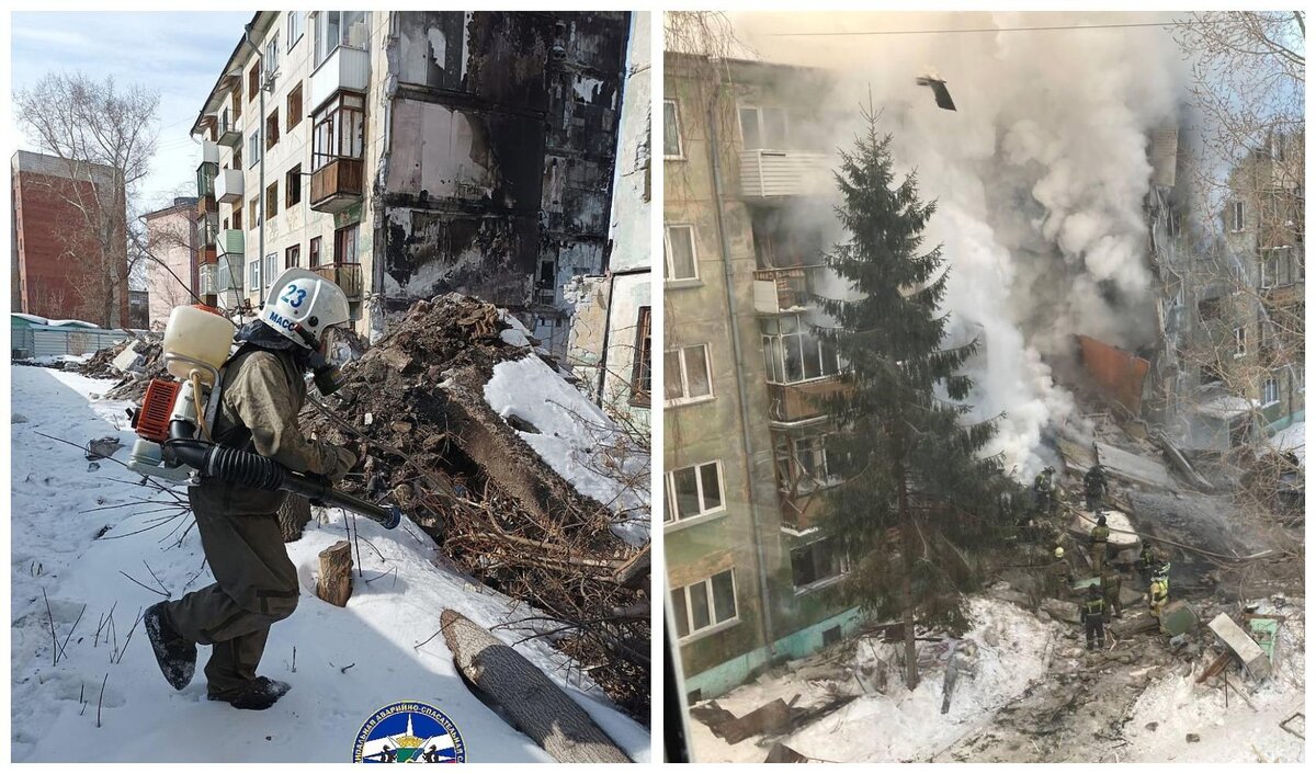 В Новосибирске спасатели МАСС продезинфицировали территорию возле взорвавшегося дома на Линейной