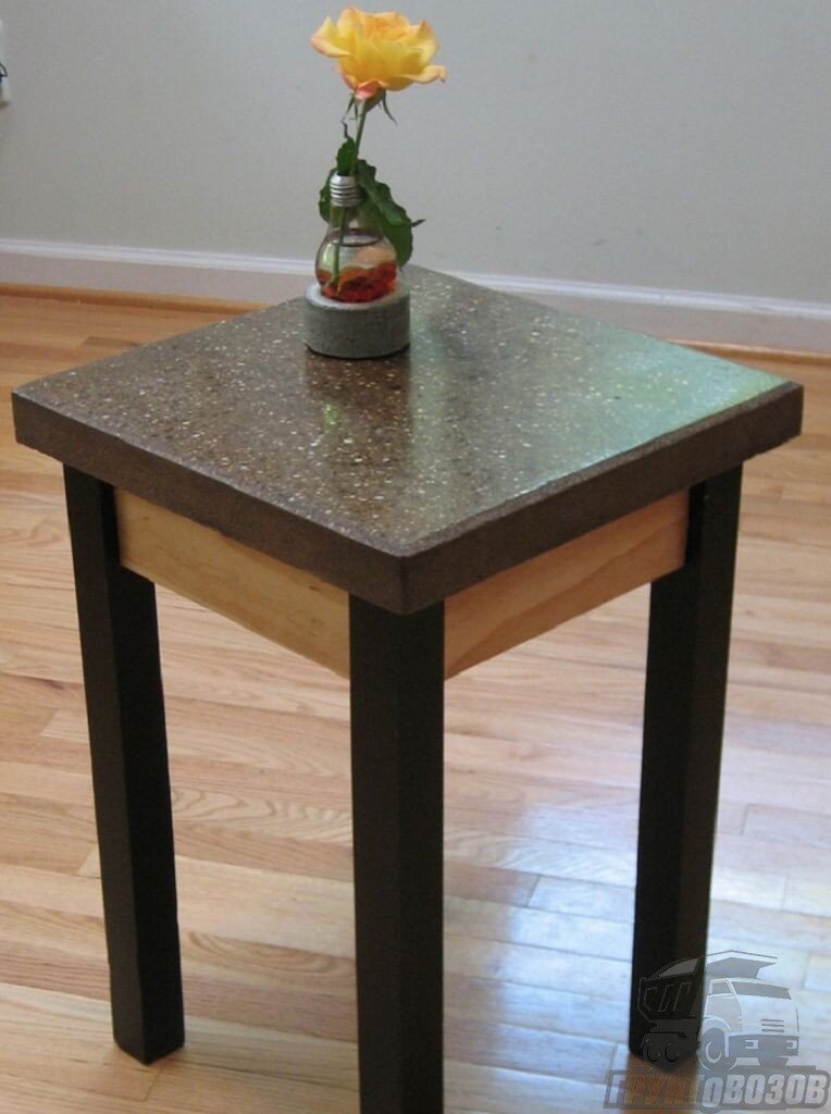 - Хотите сделать оригинальный стол для гостиной? Его можно изготовить из полимерного бетона. Для этого в мастерской можно заказать специальную форму. После того, как вы выберете цвет, тип наполнителя, размеры и дизайн стола, залейте смесь в форму. Через несколько суток стол будет готов. Он может быть цельным или сделанным из отдельных деталей.