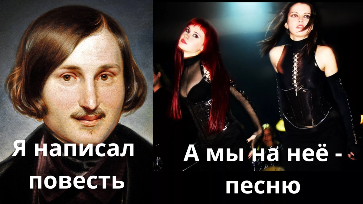 Николай Васильевич Гоголь - составная часть нашей, русской литературы. Забавные, поучительные, мрачные - его произведения изучаются школьниками и по сей день. Кстати, о мрачности... Одна из повестей Гоголя нашла своё отражение в музыке. Угадаете, какая? "Три ночи подряд свечи будут мерцать. Три ночи подряд ведьма будет искать. Три ночи подряд ей в глаза не смотри. Там, за кругом из мела, страх царит до зари." Или вот ещё отрывок: " В первую ночь в церкви слышали крик Во вторую ты поседел, как старик В третью ночь за кругом отчаянный вой Перед рассветом смерть придёт за тобой" Ну конечно же это "Вий". А песня называется "Три ночи" от группы UNREAL (саунд-трек к фильму "Ведьма")