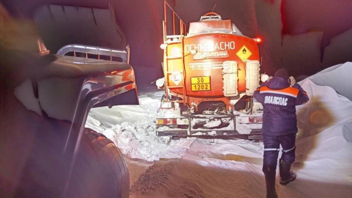 На трассе Новый Уренгой — Ямбург ночью застрял в снегу бензовоз