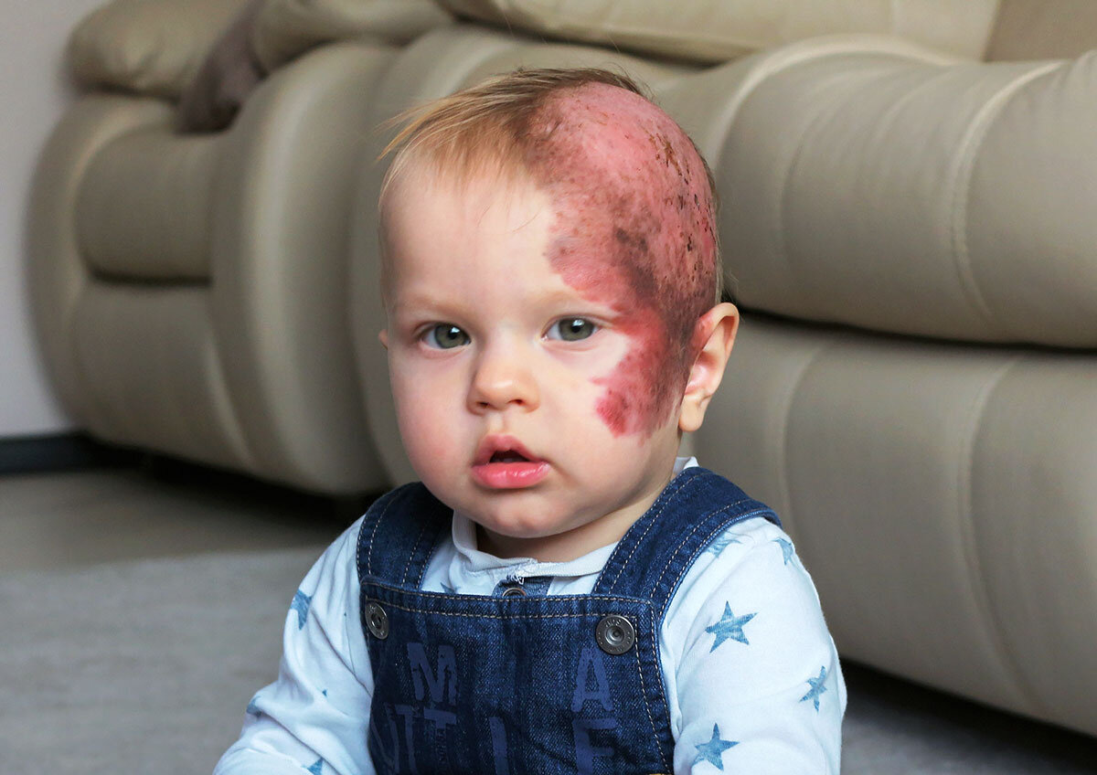 Годовалому Диме нужна помощь, чтобы избежать смертельной меланомы Дима родился с гигантским невусом на голове. Это доброкачественное образование, но оно может в любой момент переродиться в смертельно опасную меланому. Поэтому пятно необходимо как можно скорее удалить. Петербургские специалисты готовы взяться за случай Димы, но стоимость лечения огромная. Дима Чабанок, 1 год. Врождённый гигантский пигментный невус левой половины лица и волосистой части головы. Требуется поэтапное хирургическое лечение. Стоимость 2 369 640 руб. Дима родился с огромным тёмно-коричневым пятном на левой части головы и лица. Врачи сообщили родителям, что у их сына обнаружили порок сердца, а пятно на голове, вероятно, гигантский пигментный невус. При этом все плановые УЗИ и скрининги показывали, что плод развивается без патологий. На третьи сутки маму с мальчиком перевели в областную детскую клиническую больницу, где поставили окончательный диагноз: меланоформный невус левой части кожи головы и лица. К счасть