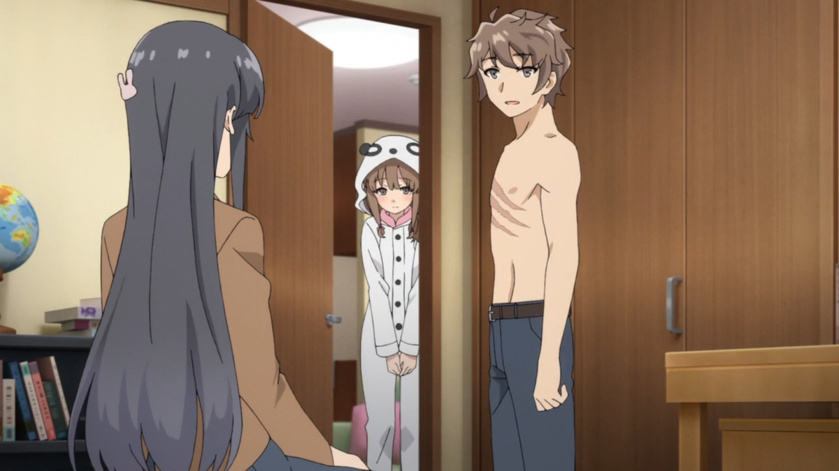 Честно говоря очень долго откладывал просмотр данного аниме. Даже помню как-то включал его и покрутил пару серий и как-то не зацепило. Но видел много хорошего про него, да и оценка высокая. Вот и решился посмотреть. Сам сюжет крутиться вокруг двух персонажей. Сакута Адзусагава и Маи Сакурадзима. Сакута - обычный школьник, который имеет одну суперспособность( это я так решил, что это суперспособность), которая работает только на Маи. Он может ее видеть всегда. Звучит немного странно, но сейчас все объясню.