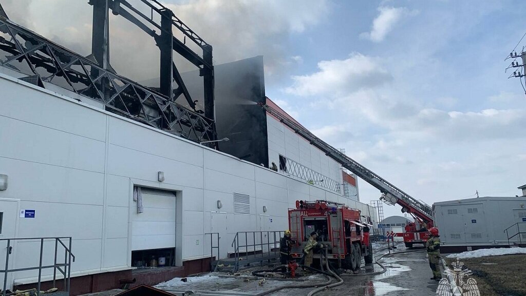 Напомним, двухэтажное здание научно-производственного холдинга ВМП загорелось сегодня утром. Пожарным удалось локализовать огонь на площади 4000 кв.м. Во время тушения обрушилась стена на втором этаже, внутри комплекса произошло несколько взрывов бочек с легковоспламеняющейся жидкостью. Пострадавших в пожаре нет. Более сотни сотрудников успели эвакуироваться из заводского здания до приезда спасателей. Е