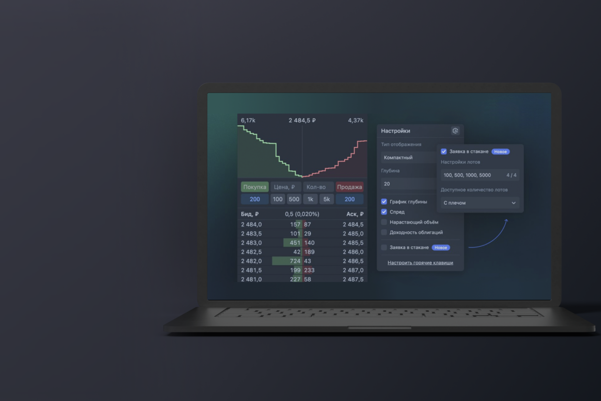 Запустили новую фичу для активных трейдеров. Чтобы выставить лимитную заявку на покупку или продажу того или иного актива, больше не нужно открывать массу виджетов. Следите за биржевым стаканом и выставляйте заявки прямо в нем.