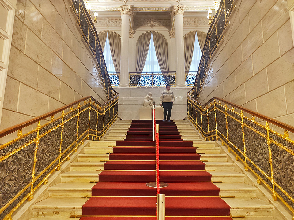 Как только войдешь в музей, открывается вид на прекрасную парадную лестницу. Можно сказать, что она шикарна, но это слово все равно не настолько ёмкое для описания. Смотрите сами)))