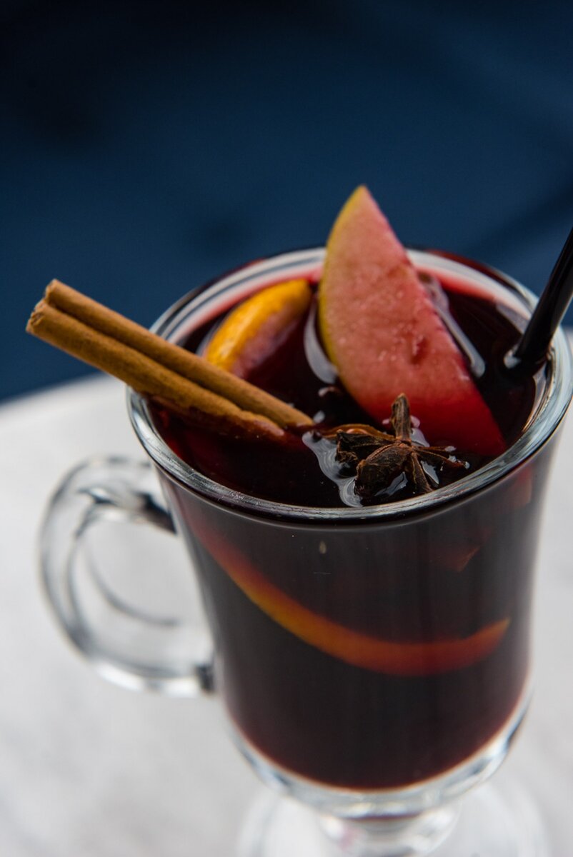 Взять 1,5 литра красного сухого вина, 300 гр сахара, 3 шт гвоздики, щепотка корицы, измельчённые цедра 1 лимона. В эмалированную посуду влить вино, добавить сахар, гвоздику, корицу и цедру( в марлевом узелке) , нагреть до 70-80 °, процедить и подавать в горячем виде.