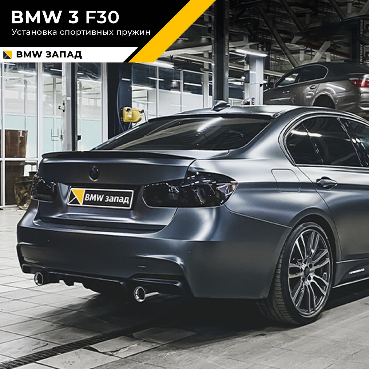 В работе мы использовали проверенные пружины от фирмы Eibach. Установка в задней части автомобиля довольна простая. Для замены передних пружин требуется разбор амортизатора. В конце работ обязательно выставили углы сход\развала.