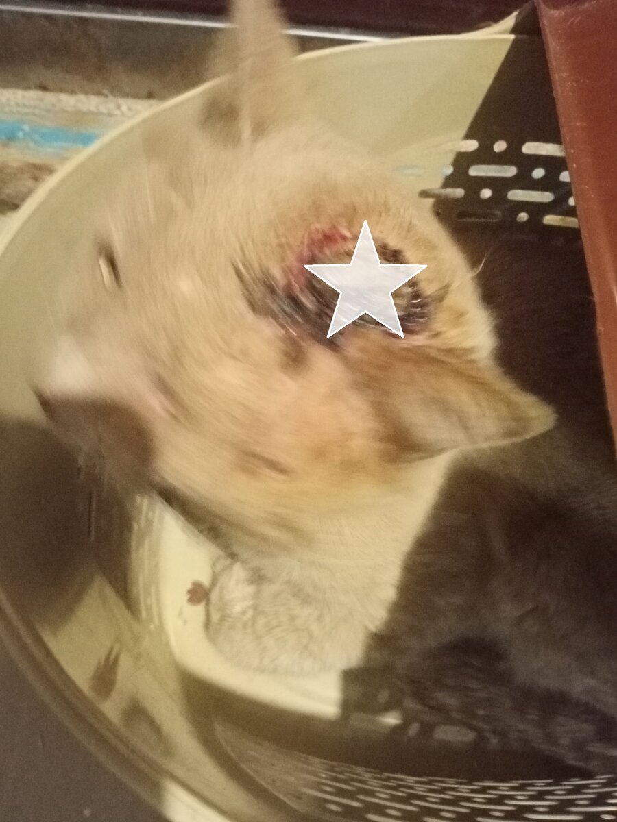 Средства на вакцины взяты с корма. Привезли котика с Макеевки с ранкой на голове. На голове рана, но не от собак. На людских рук похоже...