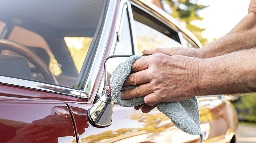 Для очищения машины надо нанести сухую мойку на кузов, подождать минуту и очистить с помощью микрофибры.