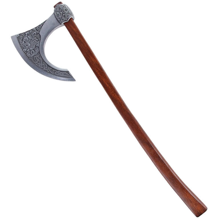 Боевой топор был одним из наиболее распространенных и эффективных оружий викингов. Он был использован во многих битвах и стал символом силы и мужества средневековых скандинавов. Боевой топор викингов имел особую форму, отличающую его от других топоров того времени. Он был коротким и широким, с длиной лезвия в районе 20-30 см и весом около 1 кг. Лезвие топора было острое на одной стороне и заостренное на другой, что позволяло использовать его как для рубки, так и для проникающих ударов. Рукоять топора была обычно короткой и сделана из дерева или кости, а лезвие было прикреплено к рукояти с помощью металлической клинковой прокладки. Боевой топор викингов использовался как в ближнем, так и в дальнем бою. Он был эффективен против легко доспехованных врагов, таких как легионеры Рима, и мог наносить сокрушительные удары по щитам и доспехам. Также он мог использоваться для разрушения вражеских оружий и обороны. В бою викинги часто использовали свои топоры в сочетании с щитом и мечом. Топор