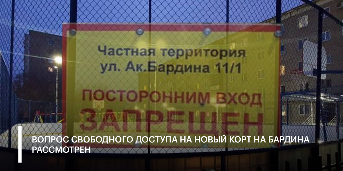 ВОПРОС СВОБОДНОГО ДОСТУПА НА НОВЫЙ КОРТ НА БАРДИНА РАССМОТРЕН