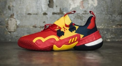 Переходим к обуви. И здесь нас ждет коллаборация adidas и баскетболиста Деррика Роуза – модель Son of Chi GY3268 в красно-черной расцветке. Обратите внимание на детали: тут и гибкий задник, и сетчатый верх, и стелька с картинкой, отсылающей к отношениям Деррика с его матерью.
