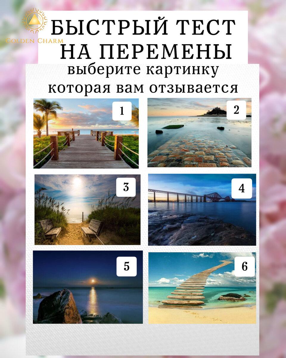 Заказать личный расклад тут✅ Добрый день, дорогие мои😘 🔮 Ставьте лайк посту 🔮 Сделайте вдох-выдох, расслабьтесь 🔮 Прислушайтесь к интуиции, выберите заинтересовавшую вас картинку. 🔮 Пишите в комментарии, какую картинку выбрали. Итак, 🔥"БЫСТРЫЙ ТЕСТ НА ПЕРЕМЕНЫ" Дорога 1. Вас ожидают вполне позитивные перемены. Однако в результате вы утратите свободу выбора, действий. Вы будете подчиняться определенным правилам и необходимым условиям.Что-либо изменить на начальном этапе Вы вряд ли сможете. Дорога 2. Вас ожидают продуктивные изменения в Вашей жизни. Вы неуклонно движетесь к намеченной Вами цели. Похоже, что результат перемен порадует и вдохновит Вас. Вы хозяин положения на данном этапе. Дорога 3. Вас ожидают изменения в личной жизни. Вероятно Вы встретите родственную душу. Либо придете к взаимопониманию с близким Вам человеком. В любом случае ваша жизнь будет более гармоничной в результате этих перемен. Дорога 4. Вас ожидают перемены в деловой или профессиональной жизни. Ка
