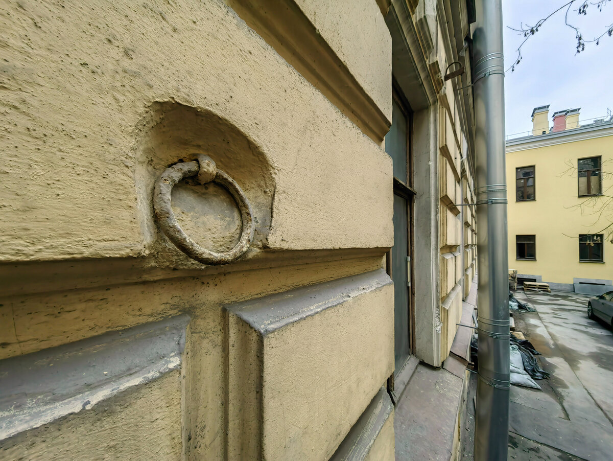 В этой маленькой заметке я хочу показать вам одну историческую деталь, которая находится во дворе на Галерной улице. К слову, о ней я ничего ранее не знал. До тех пор пока мне в комментариях один человек не поведал про этот адрес. Эта деталь называется коновязь. По крайней мере так её именуют в народе. Хотя старых фотографий, конечно же, я нигде не встречал. Напомню, что о похожих деталях мы с вами беседовали ранее. А в этой заметке я нарисовал схему где искал именно старую коновязь. Но так и не нашёл. Хотя она фигурировала как объект реставрации (как я понял). Может быть, временно, сняли. Но теперь, кажется, я впервые увидел по-настоящему подлинный артефакт. Находится объект, правда, довольно высоко. И чтобы за это кольцо привязать лошадь, человек должен был быть чрезвычайно высокого роста. Хотя, и рост бы здесь не помог. Высота - метра 3 с половиной...Но если лестница на фотографии историческая, значит человек поднимался по ней, чтобы привязать лошадь...? Много вопросов всё-таки оста