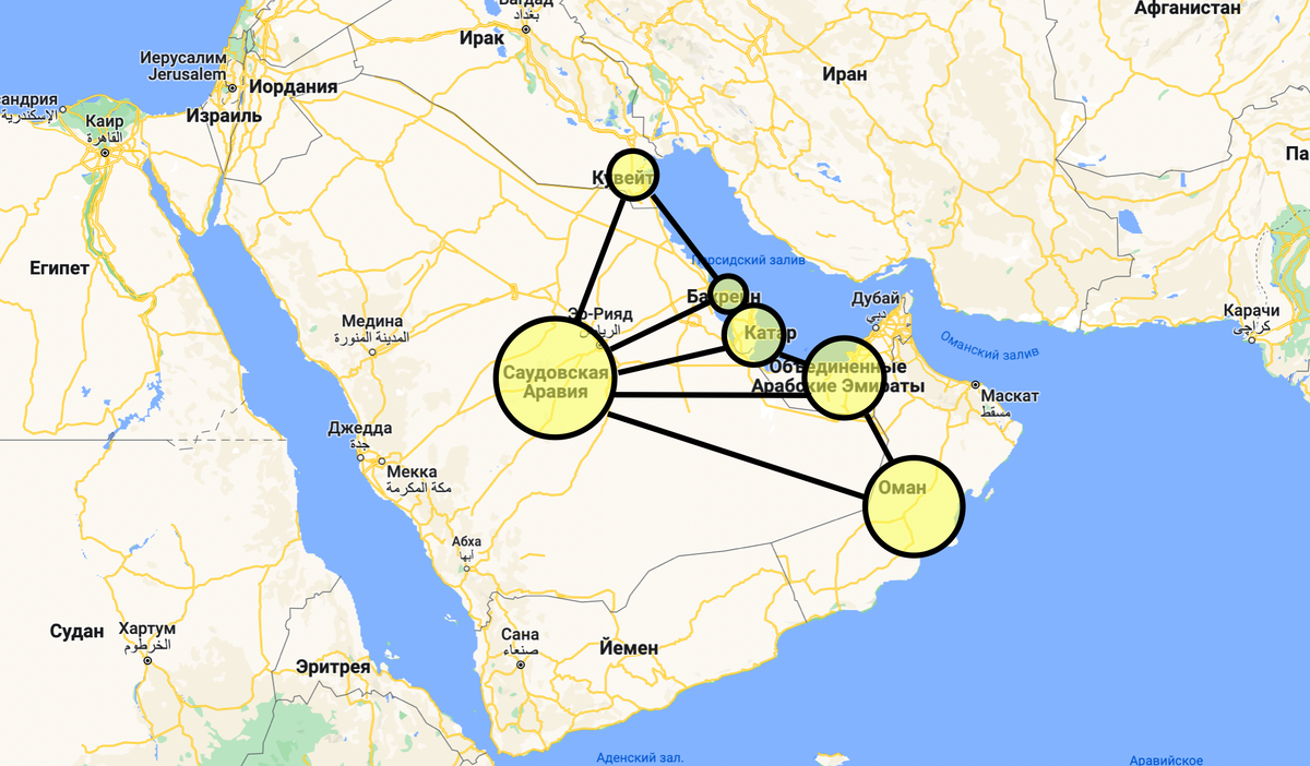 То есть это все страны Персидского залива, за исключением Ирака и Ирана. Впрочем, мир меняется так быстро и так неожиданно, что ничего нельзя исключать. Может когда-нибудь в союз вступит и Иран. По крайней мере одна фантастическая новость уже появилась: Иран помирился с Саудовской Аравией и они начинают экономическое сотрудничество.