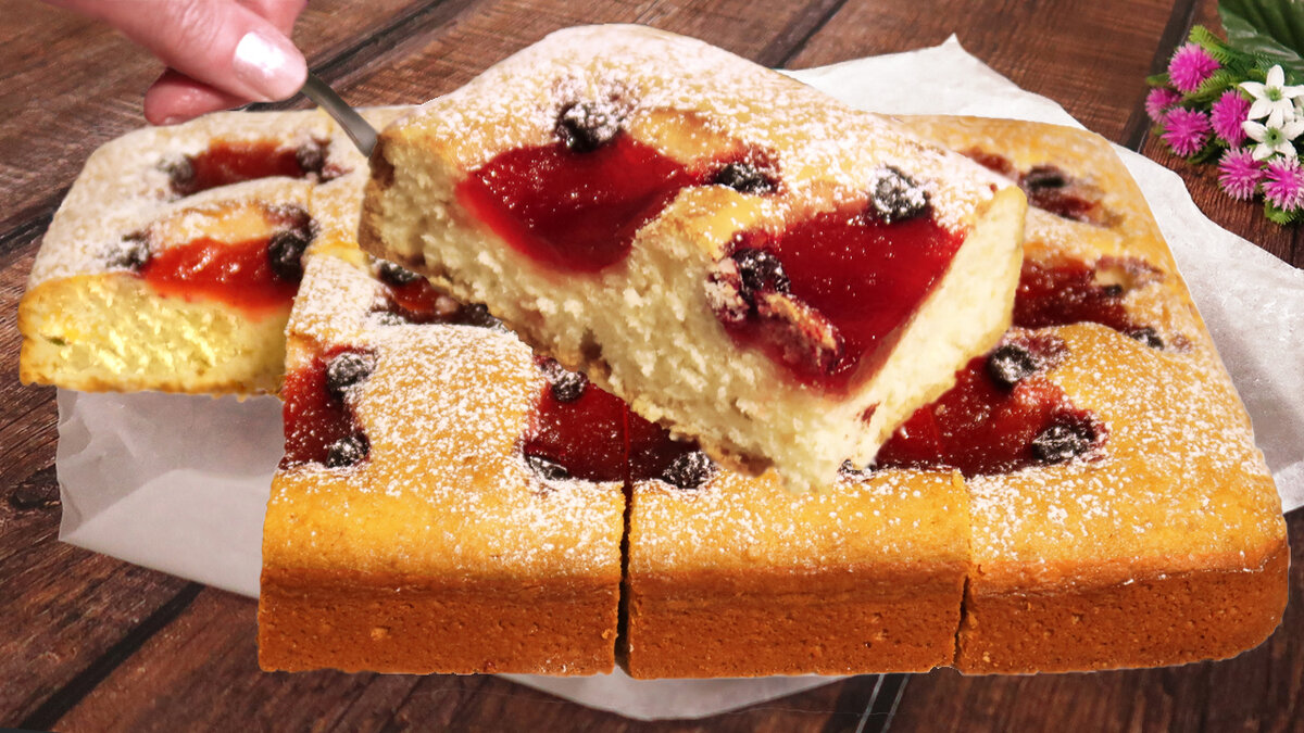 Привет друзья. Сегодня делюсь рецептом очень вкусного пирога. У него нежное тесто на сметане, начинка из джема и смородины. Готовится он очень просто