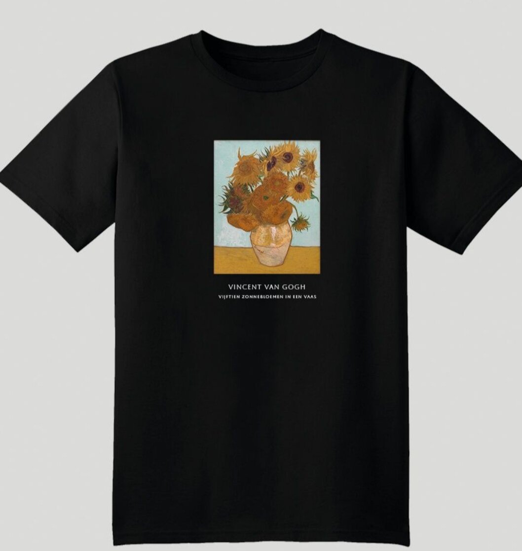 При жизни его творчество так и не было признано и востребовано. Зато сейчас его картины смотрят на нас с полок магазинов. Они повсюду, на чашках, полотенцах и визитницах. Вот и я обнаружила на WILDBERRIES такую футболку с подсолнухами.