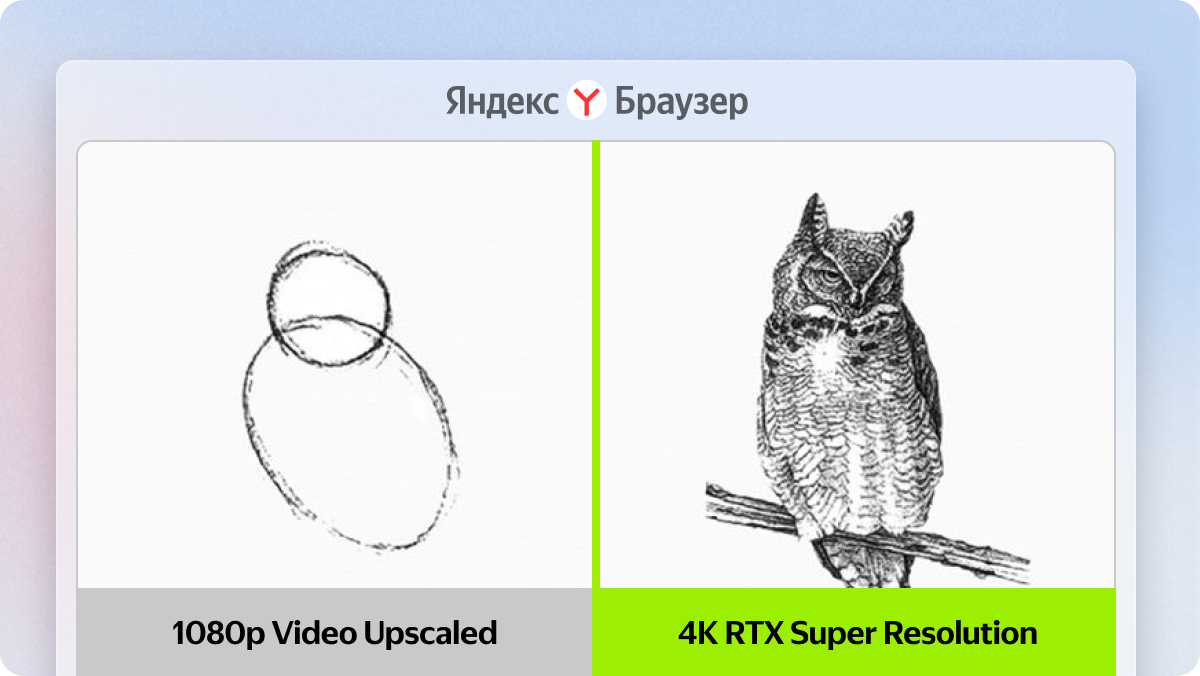 Это случилось: новая технология для улучшения качества видео RTX Video Super Resolution от Nvidia теперь доступна в нашем Браузере. RTX Video Super Resolution — это технология, которая использует искусственный интеллект для улучшения качества видео в браузерах, основанных на ядре Chromium. Она разработана специально для апскейлинга видео с низким разрешением — можно смотреть любимые фильмы, лекции с переводом и развлекательные шоу в Браузере в 4К. Яндекс Браузер поддерживает RTX Video Super Resolution для видеокарт GeForce RTX 30 и 40 серий начиная с версии 23.3.0. Подробнее о том, как включить поддержку технологии в Браузере, читайте в нашей справке.