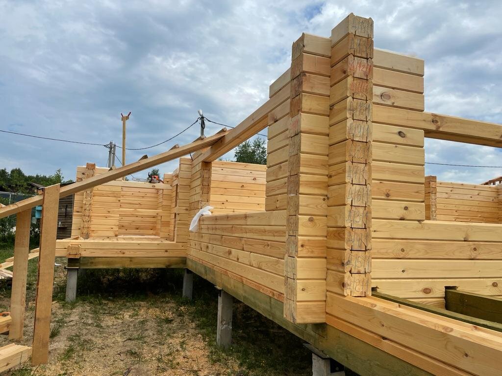 При строительстве дома из бруса с соединением в чашу за пределами стен есть выступы, или зауголки. Они делают дом атмосферным и похожим на традиционную русскую избу.