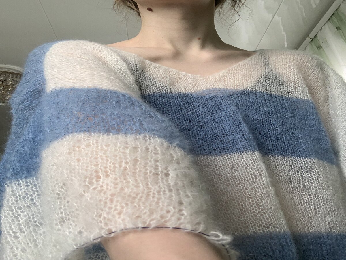Последняя работа из мохера в этом сезоне- полосатый джемпер оверсайз. Оочень нравится, что получается🫶🏻 носить буду с топами и майками. Если кого-то интересует, могу на заказ один такой связать в любом цвете.