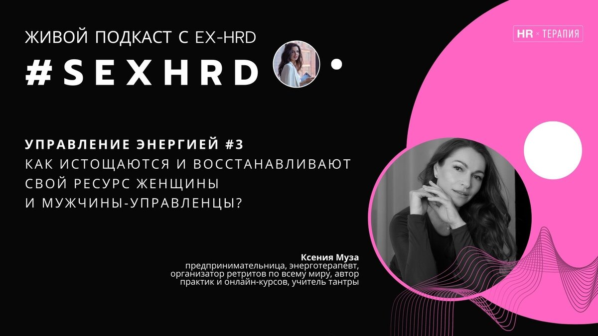 Всем привет! #SEXHRD — подкаст для управленцев. Меня зовут Ольга Зангиева, я — HR-терапевт и ex-HRD в IT. В оргразвитии и управлении персоналом я 13 лет и не понаслышке знаю, насколько роль менеджера может быть обособленной и даже одинокой, когда не с кем обсудить важные, сложные и уязвимые вопросы. В подкасте говорим о том, что по-настоящему волнует менеджеров нового времени — от антикризисного и креативного лидерства до управления сотрудниками с ментальными расстройствами. Тема первого сезона: управление своим состоянием и энергией. С самыми разными специалистами смотрим на энергию человека через призму психики, физики, ума и духа. Этот формат для тех, кто любит конспекты. Ниже ключевые мысли из разговора с Ксенией Музой, предпринимательницей, энерготерапевтом, организатором ретритов по всему миру, автором духовных практик и онлайн-курсов, учителем тантры. Тут только те мысли, которые меня тронули, удивили и вдохновили на действия. Делитесь в комментариях, что понравилось, что зацепи