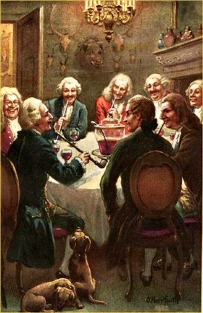 Тэк-с, кто оприходовал моё рейнское, пока я говорил? Я? Когда ж я успел? Кельнер. Стой, ты кому столько льёшь? Мне? А, ну тогда плесни ещё. Данке шён. Господа, все вы знаете, что в 1744 году я командовал отрядом, встречавшим в Риге невесту Петра Третьего – будущую Екатерину Великую. Но, возможно, не знаете, что она поцеловала меня… Я не так уж красив, но в кирасе чертовски привлекателен… А Фике уже тогда знала, что Мюнхгаузен - он такой один, как Тиньков. И это правда - нечего ухмыляться. Вы же не можете не доверять вкусу Екатерины Великой – она знала толк в мужчинах… Так вот. Привлекательны для мужчины не женщины, но женские формы. Знаете ли вы, что это такое? Нет, вы не знаете, что это такое. Процитирую Владимира нашего Маяковского:
