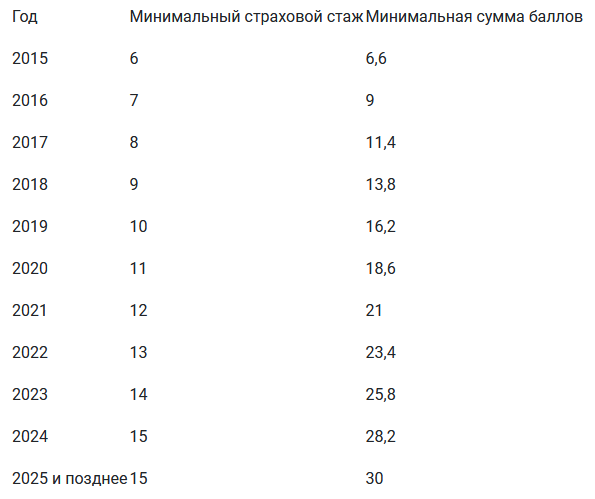 Мужчины, имеющие стаж 42 года, и женщины со стажем не менее 37 лет могут оформить пенсию досрочно — на 24 месяца раньше установленного пенсионного возраста. Но сделать это можно не ранее достижения возраста 60 лет мужчиной и 55 лет женщиной. Как выйти на пенсию раньше 1000 и 1 вариант досрочной пенсии Или Для назначения страховой пенсии по старости должны быть соблюдены три условия. 1. Возраст 2. Стаж Трудиться и платить взносы человек должен не менее 15 лет. Пока что требуется девять лет, но поэтапно, по одному году, обязательный стаж увеличится до обязательных 15 лет. 3. Баллы Для начисления пенсий россиянин должен иметь в копилке 30 баллов. Это такой индивидуальный пенсионный коэффициент, которым оценивается каждый трудогод человека. Требование по наличию 30 баллов также вводится постепенно. Сейчас достаточно иметь 13,8. Но каждый год к этой величине будет прибавляться 2,4 балла. Формула пенсии Для математиков приводим формулу, по которой можно прикинуть свой доход в старост