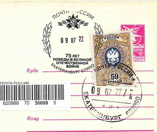В наши дни термин "информация" очень востребован. Повсюду пишут об информатизации и цифровизации. А в начале 1970-х писали об автоматизации. Информатизация - это автоматизация, только в наши дни. Каково соотношение между информацией и доказательством? В популярном учебнике сказано: "Сведения (информация) о фактах, составляющие содержание судебного доказательства, - необходимый элемент получения знаний об обстоятельствах, имеющих значение для дела" (Молчанов В. В. Глава 14. Доказывание и доказательства // Гражданский процесс : учебник / под ред. М. К. Треушникова. 7-е изд., перераб. Москва : Издательский Дом "Городец", 2020. С. 268). Далее говорится: "Доказательство - это собственно информация об обстоятельствах, имеющих значение для дела, содержащаяся в ее источниках - предметных (вещественных) объектах" (Там же. С. 320). Перед читателем изображение вырезки из конверта с памятным гашением в честь 75-летия Победы в Великой Отечественной войне. Гашение от 9 июля 2022 г. Все верно. Из
