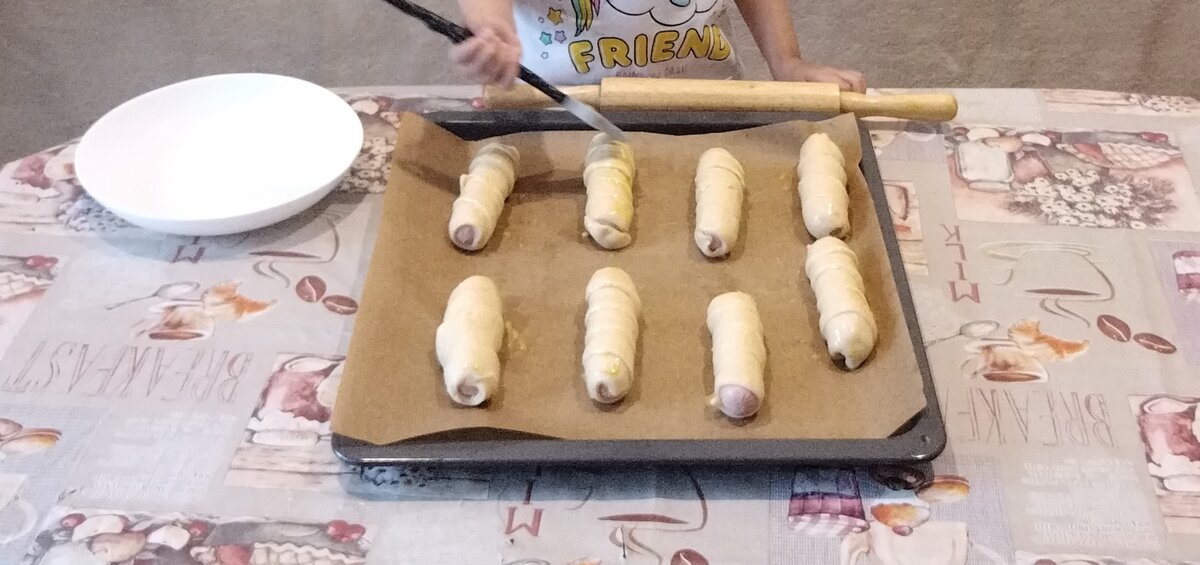 Здравствуйте мои дорогие читатели. Мы сегодня утром с Миланой сосиски в тесте напекли. Тесто замешала в хлебопечке, готовила по такому рецепту: Желток использовала для корочки. Добавила к нему немного молока. Милана моя умничка, главная помощница!) Рыжик с интересом наблюдал, как дочка тесто раскатывает) Погода у нас сегодня пасмурная и дождливая. На прогулку не выходили, очень холодный ветер. Даже Рыжик на балконе погулять не захотел. Мы с Миланой занимались дома, читали книжки, и рисовали. Милана сегодня не в настроении была, днем не смогла её спать уложить. Наверное так перемены погоды на неё действуют. На завтра тоже обещали пасмурную погоду со снегом и дождём. Так что вряд-ли Серёжа возьмёт дочку на прогулку. А мне так хочется солнышка и тепла!)) Вечером дочка сделала мне спа процедуру. Она очень любит мазать мне ножки и ручки кремом. А я не против))) А вот Рыжик сразу убегает) Ужин у нас был максимально простой. Отварила картофель и поджарила его на топлёном масле. Допол