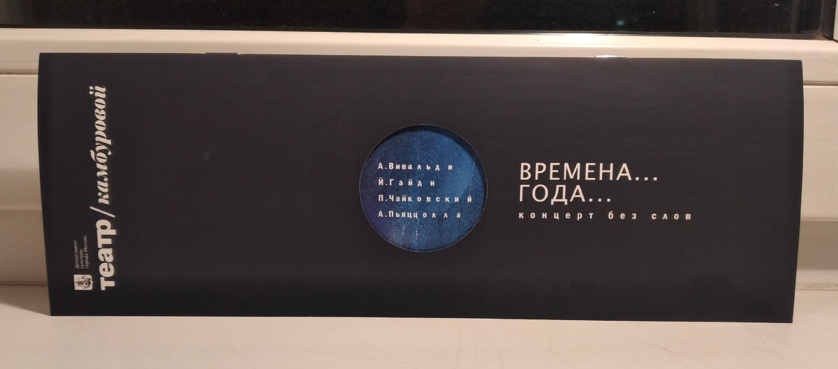 Здравствуйте мои уважаемые читатели, Рада видеть Вас на моё канале ⚘. Данная статья немного не по темам блога, но не могу не поделиться с Вами своим походом в театр. Как давно я не была в театре? Много лет :-). Мне на работе подарили билеты в театр Елены Камбуровой на "Почти счастливую историю", билет на два лица :-). Взяв с собой подругу (имя писать не буду, я не спросила разрешения на публикацию имени), с огромным удовольствием после работы 22 марта, приведя себя в порядок, я потопала в театр. В театре была замена спектакля на "ВРЕМЕНА... ГОДА... концерт без слов", постановка и сценография Ивана Поповски; музыка: А.Вивальди, Й.Гайди, П.Чайковский, А.Пьяццолла Ни я, ни моя подруга, мы не расстроились, мы были в театре Камбуровой в первый раз. Фото ниже - обложка програмки: Давайте вначале о театре. Театр не очень большой, находится на первом этаже старого дома в Хамовниках (думаю, что 30-х годов прошлого века), очень уютный. Ниже фотографии оформления холла театра, фотографии сдел