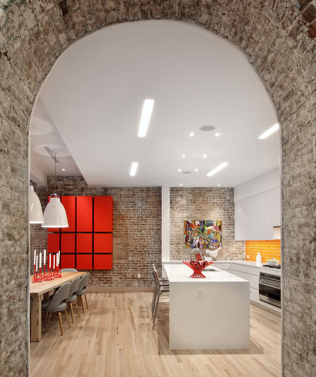 Проект от студии Ghislaine Viñas Interior Design — дуплекс площадью 3300 кв. футов в историческом здании Dietz Lantern в районе Трайбека, Нью-Йорк.