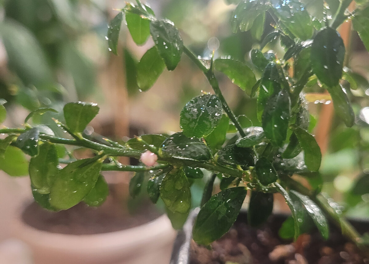 Еле заметила микробутон на микроцитрусе! Он такой крошечный, бутон и сам цитрус! Такая внезапная большая радость от микрика, его первое цветение!