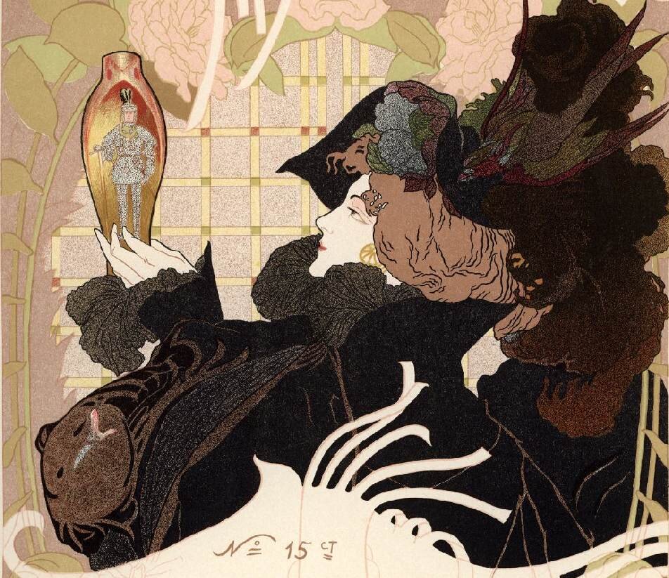 Жорж де Фер (1868-1943), - один из тех универсальных создателей модерна, которые были так же способны нарисовать плакат, как и спроектировать все элементы театральной постановки, набор мебели для гостиной или фарфоровую вазу. У французского художника, дизайнера, сценографа и промышленного дизайнера на самом деле было более сложное и труднопроизносимое имя для франкоговорящего человека: Жорж Жозеф ван Слейтерс. Его мать была бельгийкой, а отец - состоятельным голландским архитектором. В 18 лет он попытался сопереживать своим корням, став одним из 11 студентов, принятых в Королевскую Академию изящных искусств (Rijksakademievanbeeldendekunsten) в Амстердаме, но продержался недолго, чувствуя себя скованным формальными художественными исследованиями, ограничивающими его независимость. Он больше не ходил в учебное заведение и вернулся в Париж, где был учеником Жюля Шере, мастера ярких плакатов для представлений и вечеринок BelleÉpoque и считающегося изобретателем современного плаката. Таким