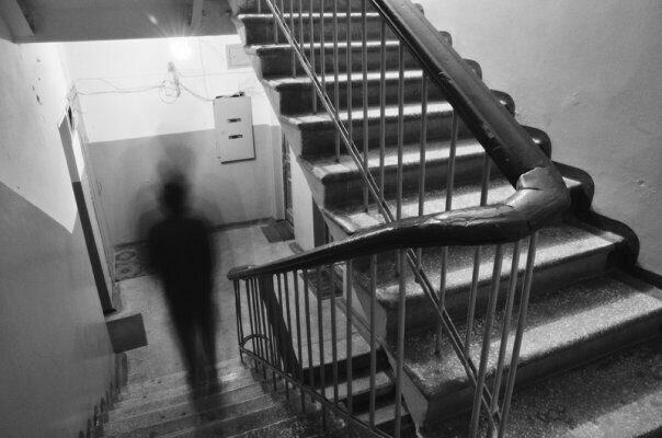 На третьем этаже моё тело почему-то вопреки моему желанию налились свинцовой тяжестью. Я будто бы попал в один из своих детских кошмаров. Пустой подъезд с выкрашенными казённой синей краской стенами, запылённое окно, старая лампа на стене, которая силится вернуться к жизни, но время берёт своё. Она ярко вспыхивает, замирает на секунду, потом начинает подрагивать и вдруг гаснет, но не до конца. Свет едва теплится внутри, трепещет, наполняя пространство почти ощутимым присутствием чего-то или даже кого-то невидимого. Дрожащий сумрак, казалось, можно было потрогать рукой, почувствовать его плотность, упругость.