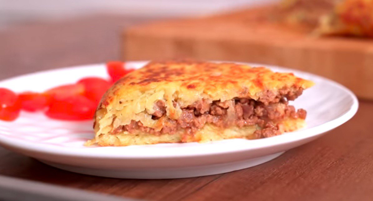 Ингредиенты: Приготовление: 1. Нарезаем лук на мелкие кубики и обжариваем до прозрачности. К луку добавляем фарш, специи, чеснок, соевый соус и кетчуп. Все перемешиваем хорошенько и доводим до готовности нашу начинку. 2.Натираем на крупной терке картошку и отжимаем сок с нее. Далее добавляем яйца и специи. Все перемешиваем. Раазогреваем сковороду и растапливаем сливочное масло (можно использовать растительное). Делим картошку на две равные части и начинаем выкладывать в сковороду первый слой формируя небольшие бортики 1см. Сверху слой всего фарша и следом снова картошкой. 3. Накрываем крышкой и обжариваем с одной стороны на маленьком огне 20-25 минут. ( если на крышке скапливаем конденсат, то его просто протирам салфеткой). Когда одна сторона зажарилась, можем переворачивать на другую и также 20-25 минут обжарить до готовности (крышкой можно не накрывать).