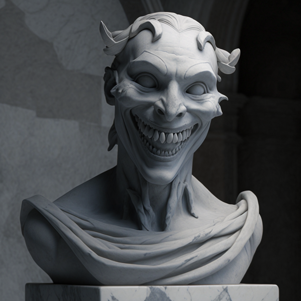 Туманный город был знаменит своими мрачными уголками и странными историями. Однако одно удивительное явление привлекло внимание его жителей - статуя, которая загадочным образом перемещалась по всему городу. Она была невысокой, из белого мрамора, и представляла собой человека с улыбкой, как будто знающим некую тайну. Героем нашей истории был Джонатан, молодой человек, работающий в местной газете. Он решил разгадать тайну статуи, и его расследование привело его к тому, что каждый, кто видел улыбку статуи, начинал испытывать странные симптомы - сначала непонятные тревоги, затем слабость и потерю контроля над своими мыслями. "Это всего лишь кусок мрамора", — думал Джонатан, когда увидел статую впервые, взирая на её белоснежную улыбку. Он не мог понять, как такой беспричинный страх мог охватывать людей, которые лицезрели это произведение искусства. Джонатан встретился с Анной, женщиной, которая тоже видела статую. Её глаза были наполнены страхом, и она не могла отделаться от ощущения, что у